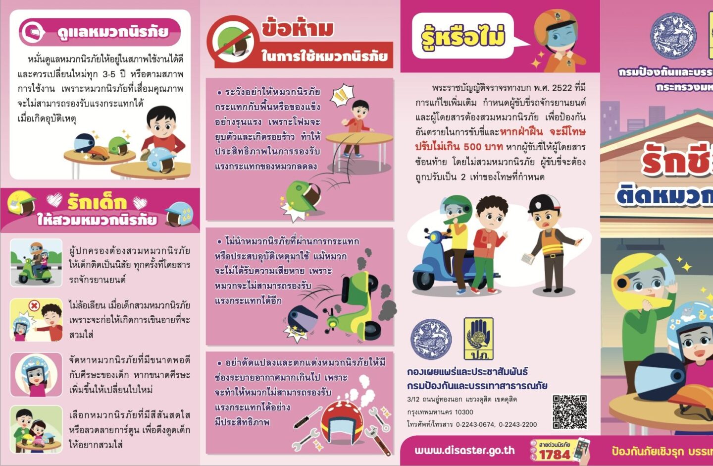 สื่อแผ่นพับชุดความรู้การรณรงค์ป้องกันและลดอุบัติเหตุทางถนน เรื่อง “รักชีวิต ติดหมวกนิรภัย”