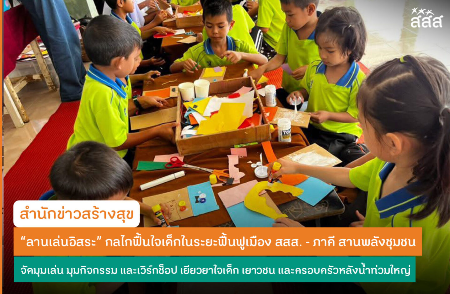 “ลานเล่นอิสระ” กลไกฟื้นใจเด็กในระยะฟื้นฟูเมือง สสส. – ภาคี สานพลังชุมชน จัดมุมเล่น มุมกิจกรรม และเวิร์กช็อป เยียวยาใจเด็ก เยาวชน และครอบครัวหลังน้ำท่วมใหญ่