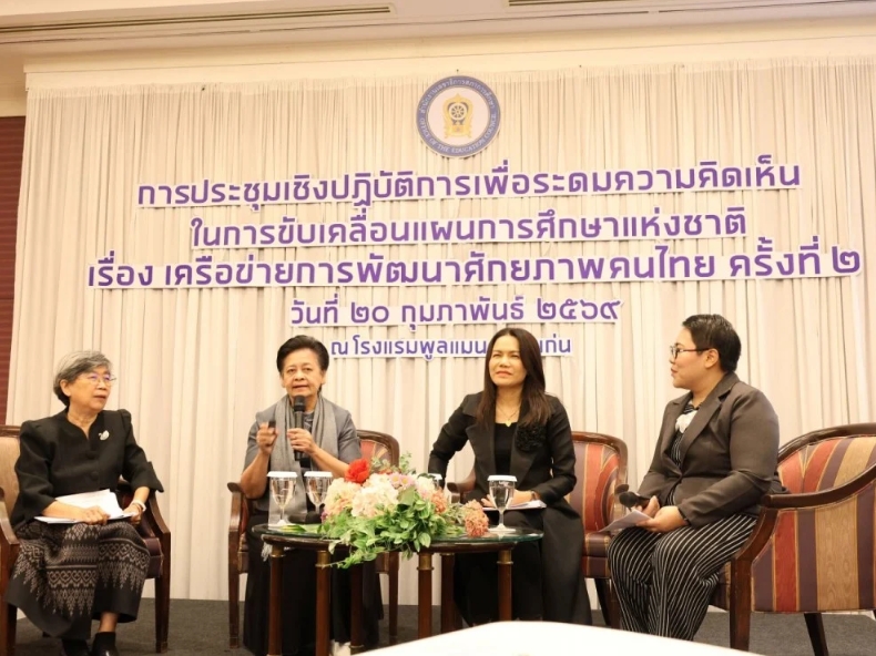 เมื่อวันที่ 19–20 กุมภาพันธ์ 2569 ที่ผ่านมา รศ.ดร.ประวิต เอราวรรณ์ เลขาธิการ สำนักงานเลขาธิการสภาการศึกษา เป็นประธานการประชุมเชิงปฏิบัติการระดมความคิดเห็นเพื่อขับเคลื่อนแผนการศึกษาแห่งชาติ เรื่องเครือข่ายการพัฒนาศักยภาพคนไทย ครั้งที่ 2 ณ โรงแรมพูลแมน ขอนแก่น ราชา ออคิด จังหวัดขอนแก่น โดยมีผู้บริหาร ผู้ทรงคุณวุฒิ หน่วยงานภาครัฐ–เอกชน และผู้ปกครองเข้าร่วม